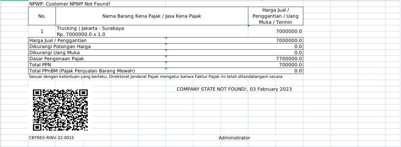 Sekarang kita coba untuk lakukan pencetakan laporan tersebut ke dalam format dokumen excel, maka dapat kita perhatikan sebuah qr code di dalamnya: