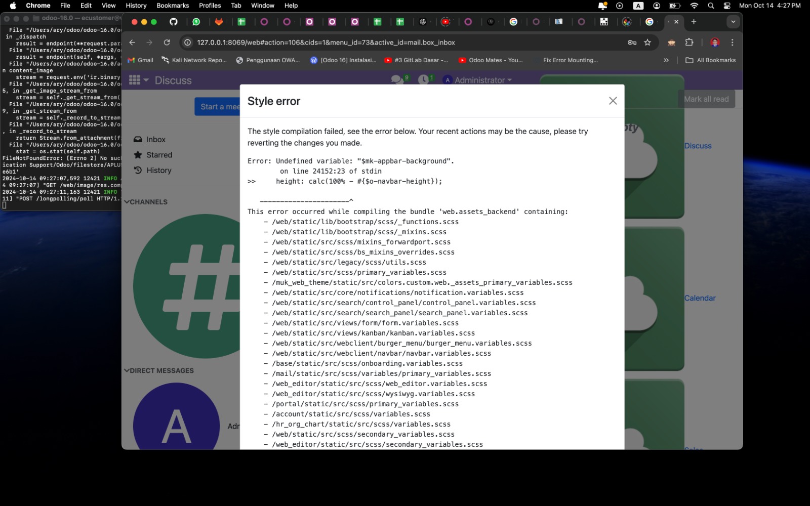Ketika saya me-restore database melalui database manager. Saya malah menemukan error tampilan pada odoo nya, setelah saya log in untuk masuk ke menu odoo.