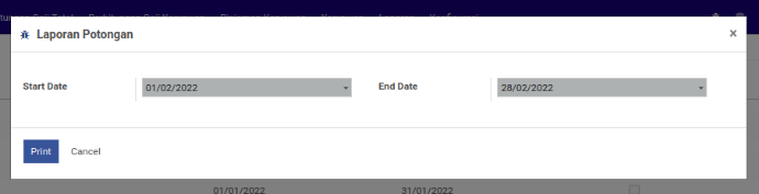 pada field start_date, diberikan nilai default berisi datetime.now().strftime('%Y-%m-01')) arti nya memberikan nilai tanggal sekarang lalu di format menjadi bentuk yang bisa diterima sistem odoo, lalu pada kolom tanggal di isi 01 arti nya memberikan nilai tanggal pertama pada bulan saat ini