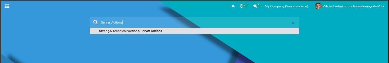 "Settings -> Technical -> Actions -> Server Actions" kemudian "Create".
